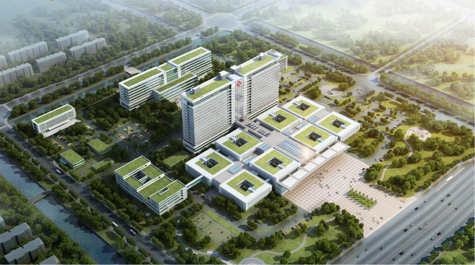 新院區位于金壇區城市規劃發展的中心地帶,總建筑面積約 24 萬平方米,其中地上建筑面積約17.8萬平方米,地下建筑面積約6.2萬平方米;總床位數1600張,項目分兩期建設,一期建設1350張床位,二期