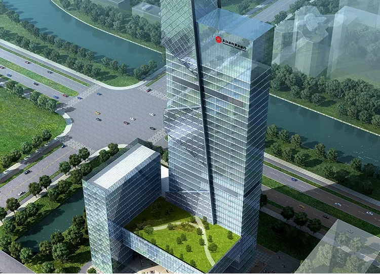 項目為總建筑面積為76000平方米的辦公發展,主體為框架結構,包含: 一幢33層的銀行辦公綜合樓、 設有2層地下停車場、項目總投資額為28200萬元。